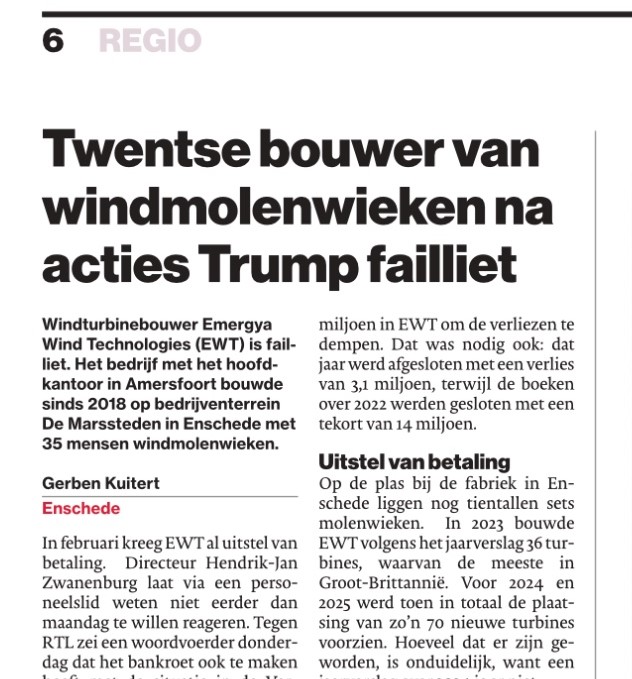 “Twentse bouwer van windmolenwieken na acties Trump failliet”.